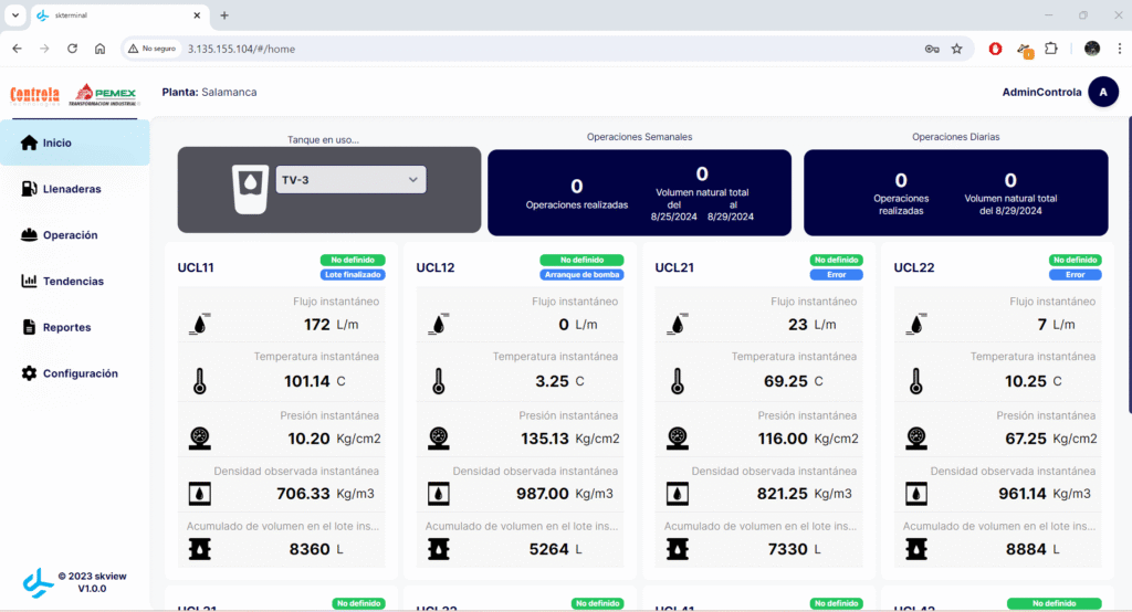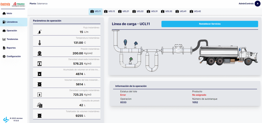 Un caso de éxito es la instalación de nuestro sistema SKTERMINAL en las líneas de llenado de asfalto en Salamanca en diciembre de 2024, un proyecto que consolida nuestro compromiso con la innovación tecnológica y la excelencia operativa en la industria. Esta implementación abarcó las ocho líneas de llenado de la terminal, integrando una plataforma avanzada diseñada para automatizar, supervisar y optimizar cada etapa del proceso de despacho de asfalto. El sistema se configuró con los módulos BASE, LLENADERAS, REPORTES, TENDENCIAS y CORREO ELECTRÓNICO, ofreciendo una solución integral que combina precisión, trazabilidad y control en tiempo real. Gracias a la arquitectura del sistema, se garantiza la integridad y seguridad de los datos, con el módulo de LLENADERAS, se obtiene un control exacto y automatizado de las operaciones; el módulo de REPORTES brinda información inmediata y confiable para la toma de decisiones; y con las TENDENCIAS se permite el análisis histórico de variables para la mejora continua; y el módulo de CORREO ELECTRÓNICO asegura una comunicación eficiente mediante notificaciones automáticas y alertas configurables. Con esta instalación, la planta de Salamanca da un paso firme hacia la digitalización de sus procesos, logrando una operación más segura, eficiente y sustentable, que eleva los estándares de desempeño y consolida su liderazgo en el manejo de derivados del petróleo.